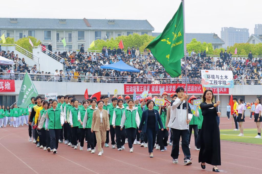 校长陈卫的开幕式讲话拉开了运动会的帷幕,各学院独具特色的方阵表演点燃了现场的氛围。“环土英才,建设未来!”,伴随着响亮的口号,环境与土木工程学院代表队踏着整齐的步伐,神采飞扬、目光坚定地走向主席台,接受领导的检阅,尽显环土的英姿。