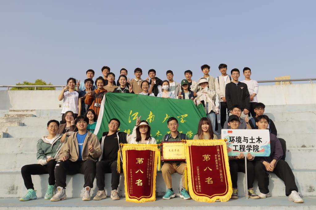 奋勇拼搏,自强不息。在两天的激烈角逐中,环土学子尽情挥洒汗水,不断超越自我,在个人项目中奋勇争先、勇于突破,在团体项目中团结协作、默契十足,赢得了观众们的阵阵欢呼,也取得了优异的成绩。郁秦杰、玉苏普喀迪尔·艾麦尔分别获得男子铅球第一名和第五名,付天云获得女子铅球第二名,黄雅娜获得女子800米第二名,李文杰获得男子110米栏第二名、男子100米第六名,吴德阳获得男子110米栏第六名,陈禹晴等人获得女子4×400米第六名,丁宇辰等人获得拔河比赛第六名,褚子轩等人获得蛟龙出海第七名,白占杰等人获得男子夹背球竞速第八名,程毅正获得男子800米第七名,蒿瑞堃获得男子跳远第七名,窦一鸣等人获得毛毛虫竞速第五名,鲍时佳、邹艾嘉分别获得女子三级跳远第五名和第八名。经过大家的不懈努力,学院斩获学生团体总分第八名、学生男子团体总分第八名、2022年学生群众体育工作先进单位等奖项,取得历史性突破。