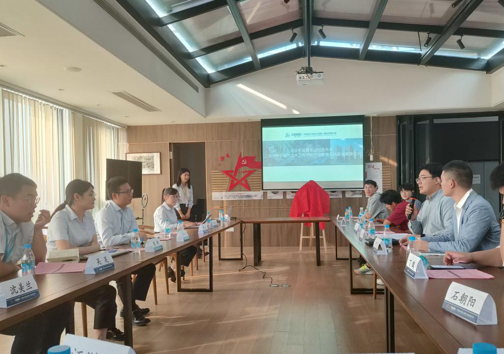 为深化校企融合发展,拓宽学生就业渠道,丰富大学生劳动教育内容,10月11日,环境与土木工程学院学工办主任兼分团委书记薛羚伟、2020级本科生辅导员何涛与部分2024届毕业生一行前往中国电子系统工程第二建设有限公司(以下简称中电二公司)开展访企拓岗暨“劳动创造未来”体验活动。中电二公司建筑总承包事业部行政副总经理尹一飞,中电二公司全资子公司、中电环境总经理助理顾林,伟德国际1946bv2015届硕士校友、中电环境华东事业部总经理助理袁博及相关部门负责人出席活动。