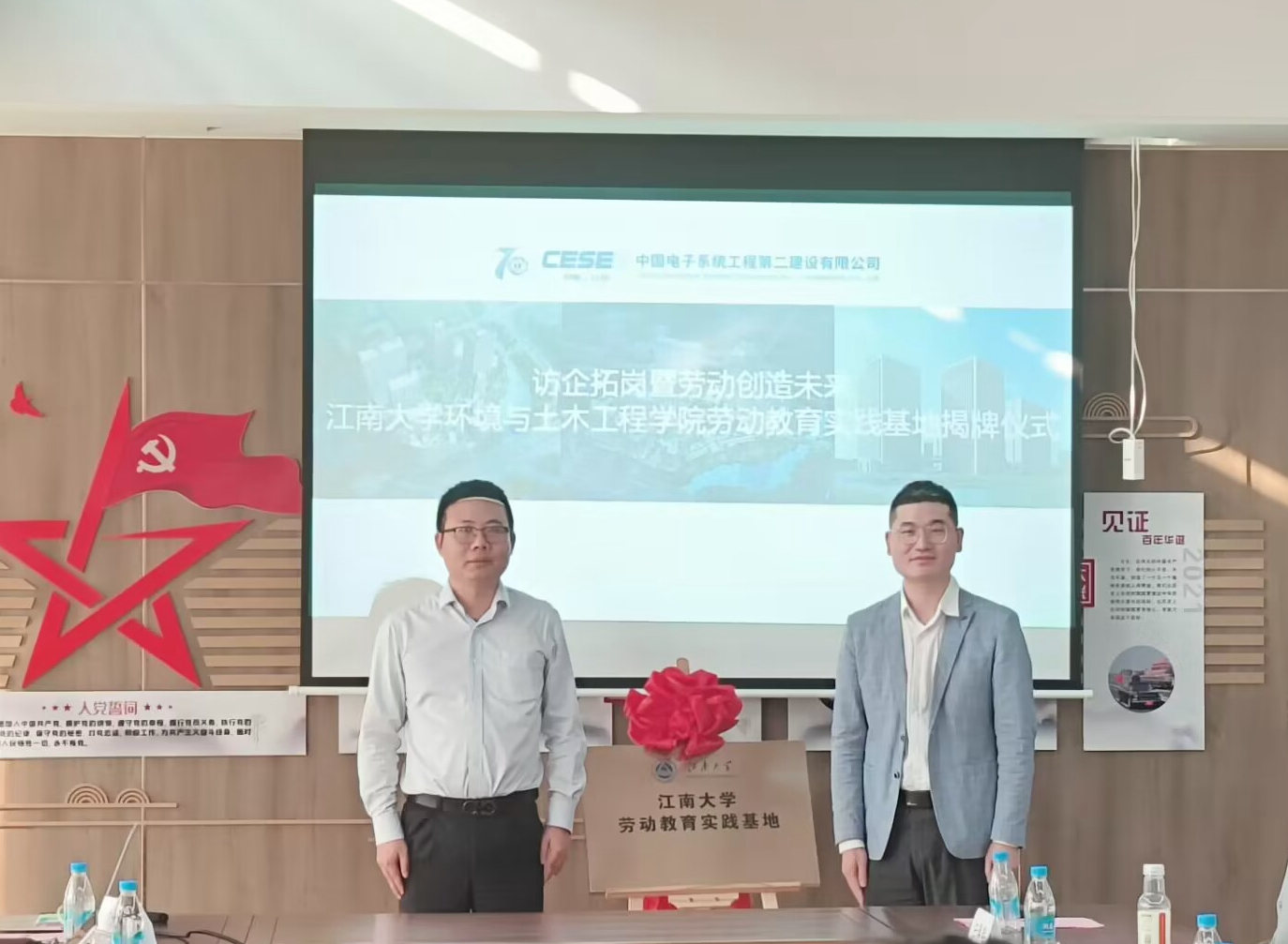 薛羚伟对中电二公司一直以来的支持表示感谢,他从学院基本情况、学科优势、专业建设、人才培养、平台建设、研究团队与合作交流等方面介绍了学院各项事业发展情况,希望双方通过交流,不断深化多领域合作,互信互利,共赢发展,共同打造产学研合作的新典范。何涛详细介绍了学院劳动教育发展历程与取得的成果,并与尹一飞共同为伟德国际1946bv劳动教育实践基地揭牌。