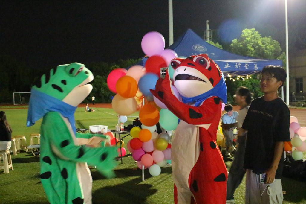 夕阳西下,落日余晖撒在同学们写下的贺卡里,第一项“猜猜他是谁”的活动拉开序幕,快速的点燃了现场的氛围。随后,同学的才艺表演让挥舞的手电代替了落日的光,美妙的歌声唱响着青春的美好。随机分组,席地而坐,“海龟汤”“看图猜成语”“真心话大冒险”等活动迅速拉进了同学们的心。激烈的踩气球活动将活动推向高潮,同学们双脚绑上气球,蓄势待发,一声令下,为了部门奋战,操场上满是奔跑的身影和悦耳的欢笑,气球“砰砰砰”,打破夜的宁静,也打破陌生的“冰”,热闹成为了操场的主旋律。紧接着的随机剧情演绎打开了同学们欢笑的阀门,大家捧腹大笑,欢乐洋溢在每个人的脸上。最后,破冰大会以动听的合唱落下帷幕,合影留念将美好定格。