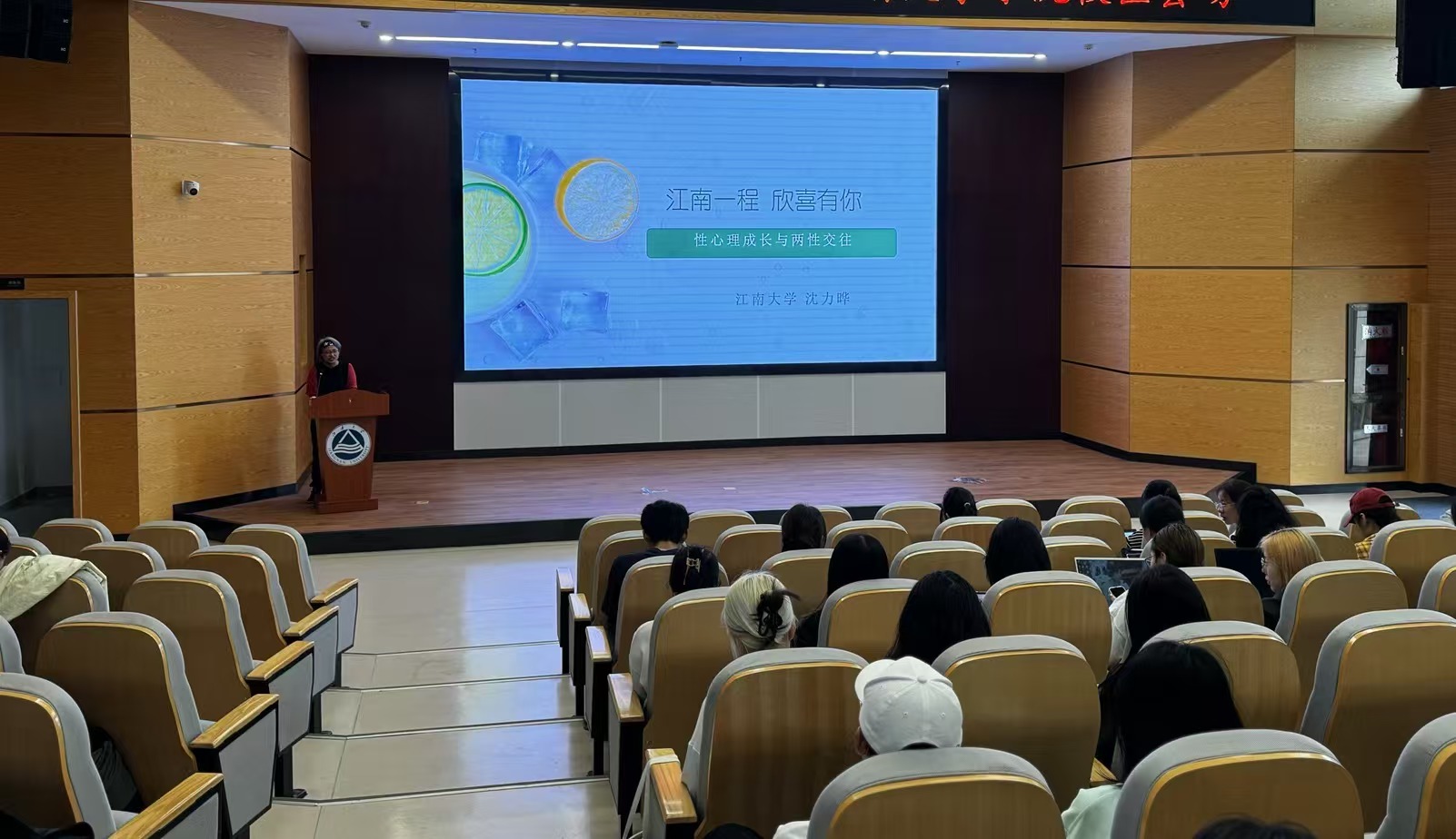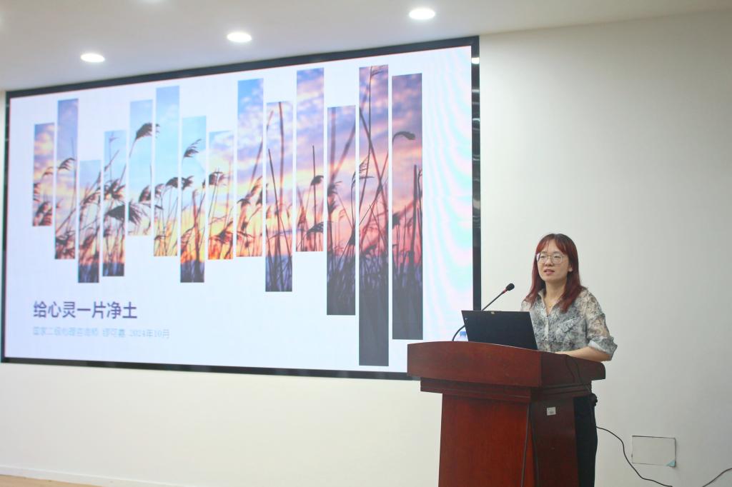 讲座上,缪可嘉以《给心灵一方净土》为题,向大家科普了如何常识性区分心理健康与否、抑郁症的表现,通过大学生常见心理问题案例分析,并提出了保持心理健康的实用策略与方法,她引导同学们要正确面对学习和生活中的压力,学会情绪调节,自我疗愈,并详细介绍了学校心理咨询服务,鼓励新生们在面对心理问题时勇敢寻求专业帮助。沈力晔做《性心理成长与两性交往》专题讲座,深入探讨了性心理成长的各个阶段,以及两性心理的差异与互动。讲座内容涵盖了从青春期的性心理变化到成年期的两性关系建立,旨在帮助学生理解性心理的复杂性,引导学生树立正确的性心理观念,促进两性心理健康发展。