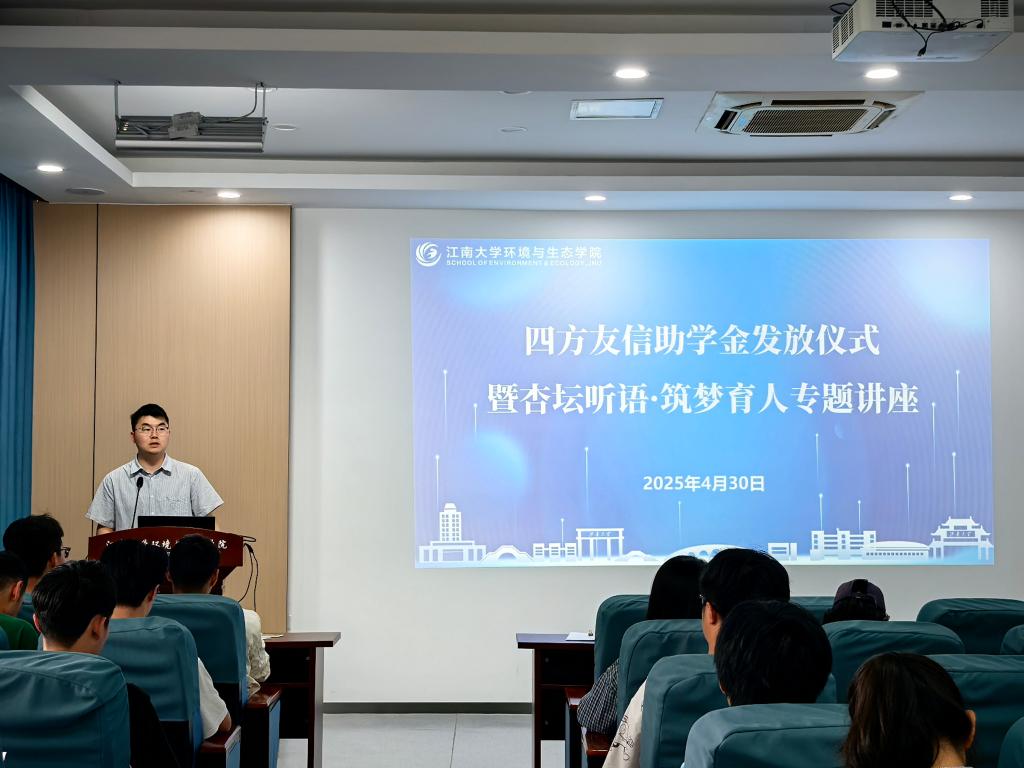 随后,两位获得四方友信助学金的优秀学生代表——艾曰松和崔怡菲,分别上台分享自己的成长经历和感悟,她们结合自身经历,从学业情况、科研探索到实践提供宝贵的经验和建议,表达了对资助方的感激之情,并承诺将努力提升自我,回馈社会。