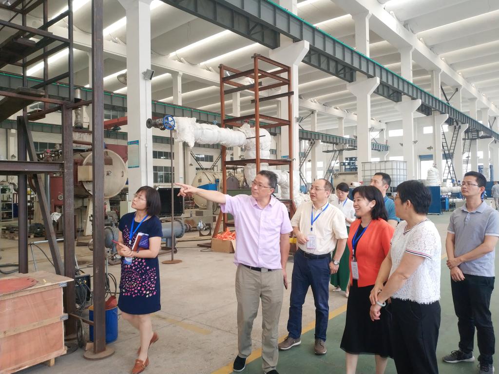 茆林凤董事长介绍了四方友信集团和赢特环保科技有限公司的发展状况,并交流了前期合作的情况。王震宇院长和李艳书记首先感谢茆林凤董事长对环境与土木工程学院学生的慷慨资助,然后介绍了学院目前的状况和未来发展的设想。王震宇指出学院虽然成立较晚,但具有地域优势,发展速度较快,希望抓住宜兴校区建设的契机,通过博士后工作站和产学研创新中心等形式与企业展开深度合作,切实服务企业技术研发,实现互利共赢。茆林凤董事长表示前期与李激教授团队有良好的合作基础,愿意支持环境与土木工程学院的发展,并计划在污水和VOCs废气处理方面与学院开展产学研合作。座谈会后,一行人参观了赢特环保科技公司的生产车间,茆林凤董事长现场介绍了活性炭再生技术及设备。