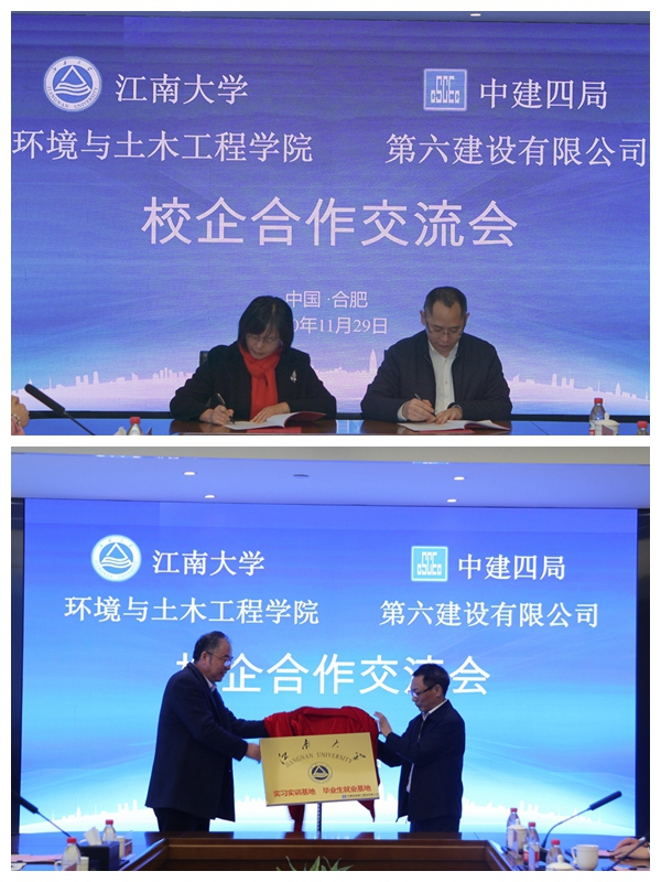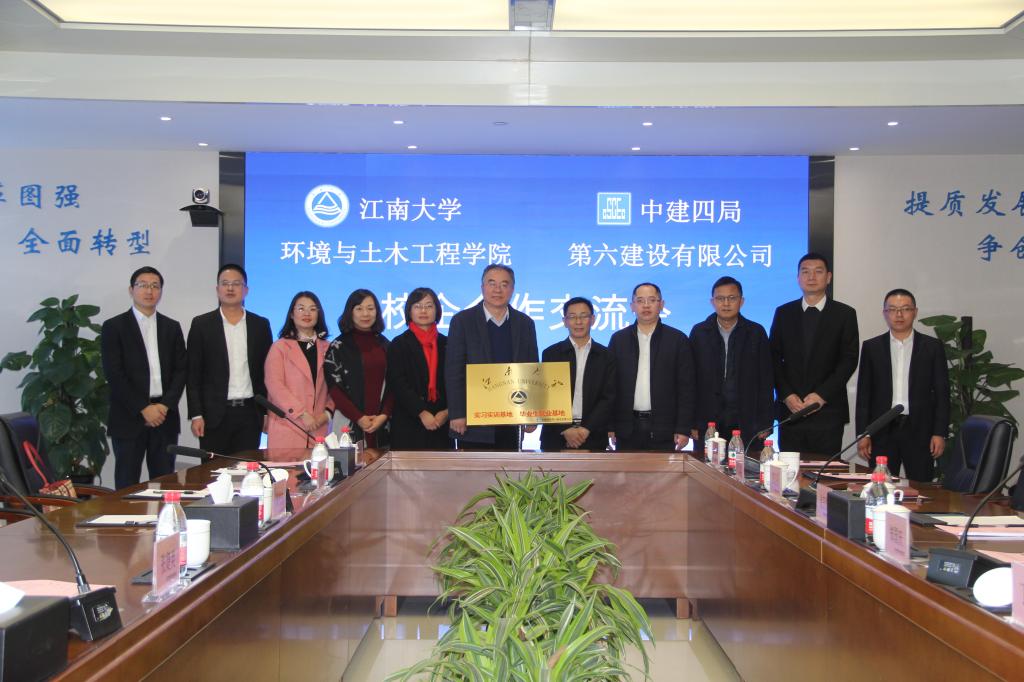 11月29日下午,环境与土木工程学院-中建四局第六建设有限公司校企合作签约仪式在公司总部合肥中建大厦举行。中建四局第六建设有限公司党委副书记、工会主席徐玉发,党委委员、董事、总会计师郑国庆,党委委员、董事、总经济师曹延强,党委委员、董事、安徽分公司党委书记、总经理丁云朝,人力资源部经理李侠,上海分公司党总支副书记、工会主席车其杰,上海分公司人力资源部经理陆强,伟德国际1946bv校长助理张光生,环境与土木工程学院党委书记李艳,招生就业处副处长张婕英,环境与土木工程学院党委副书记、副院长胡娟等参加了签约仪式。