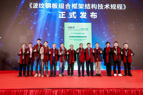 2020年11月24日,《波纹钢板组合框架结构技术规程》发布会在上海圆满落幕。该规程由我校环境与土木工程学院邹昀教授团队与上海欧本钢结构有限公司共同主编。因疫情原因,规程的第一主编邹昀教授及主要编辑王城泉老师作为伟德国际1946bv代表出席本次会议,邹昀教授就本规程相关研发工作做了细致汇报。本次大会邀请了全国勘察设计大师汪大绥、同济大学李国强教授、浙江大学童根树教授等行业权威专家及全国各地物流地产相关的知名开发商、设计院、承包商约400人,共同见证这一行业标准的发布。
