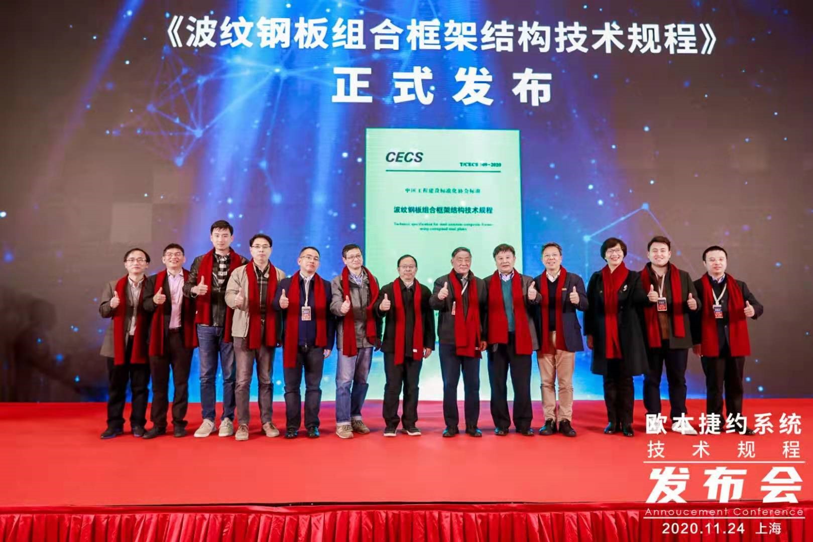 本次评选获奖的波纹钢板组合框架结构系统(又名“捷约”系统)是针对多层框架建筑的全新建造模式,采用工厂预制钢结构、现场浇筑混凝土,构件形式新颖,节点安装便捷,施工免模板免支撑,是一种新型的装配式框架结构。由伟德国际1946bv和上海欧本钢结构有限公司共同编写的行业标准《波纹钢板组合框架结构技术规程》(T/CECS 709-2020)也在2020年11月24日正式发布。