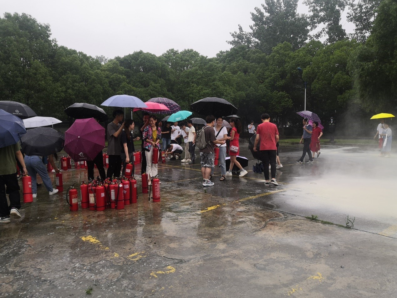 6月18日下午15:00,学校保卫处消防科和相关工作人员在学校北门停车场空地提前布置好灭火器、汽油等消防演练物资设施。环境与土木工程学院邹华副院长,学院各方向和研究团队的安全工作负责人带领实验室学生代表入场参加演练,我院现场参演和观摩的师生人员近60名。
