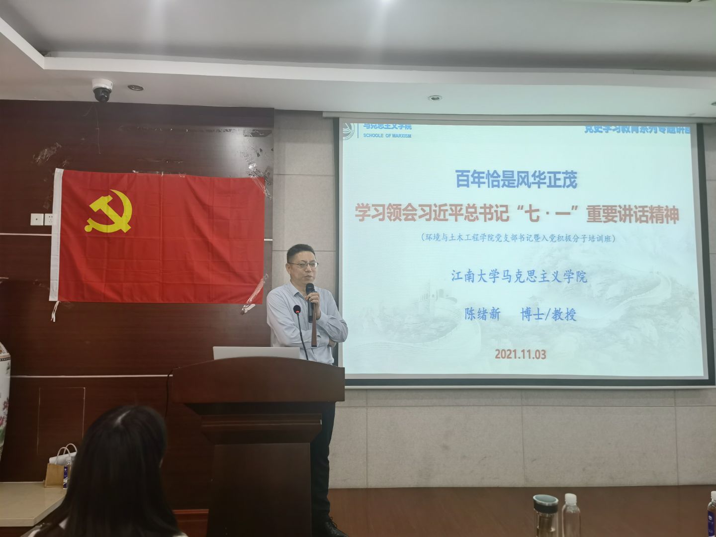 集中学习从陈绪新教授的《百年正是风华正茂—学习领会习近平总书记“七一”重要讲话精神》党史学习教育专题党课开始。陈教授从1个主题、1个精神、4大成就、9大经验等四个维度深刻解读了习近平总书记在两个一百年交汇点的重要讲话精神内涵,寄语广大青年要把青春奋斗融入党和人民事业,要成为实现中华民族伟大复兴的先锋力量,要以实现中华民族伟大复兴为己任,增强做中国人的志气、骨气、底气,不负时代,不负韶华,不负党和人民的殷切期望。学院全体入党积极分子培训班成员也同时聆听了专题党课。