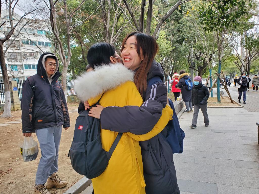 “相信自己,加油!”“别担心,抱一抱,我们始终与你温暖相随。”在学院学生各考点前,党员志愿者们举起加油板,给予拥抱,为进场的考生们加油助威。学院党委在学院学生参加考试的伟德国际1946bv、无锡商业职业技术学院、无锡机电高职、无锡积余实验学校等四个考点安排志愿服务小组,提供中午订餐协助服务、必备物资服务以及暖心助力服务,为考研学生接送订餐,发放士力架、咖啡条、口罩、暖贴等,提供热咖啡、热水等,给予关心拥抱。