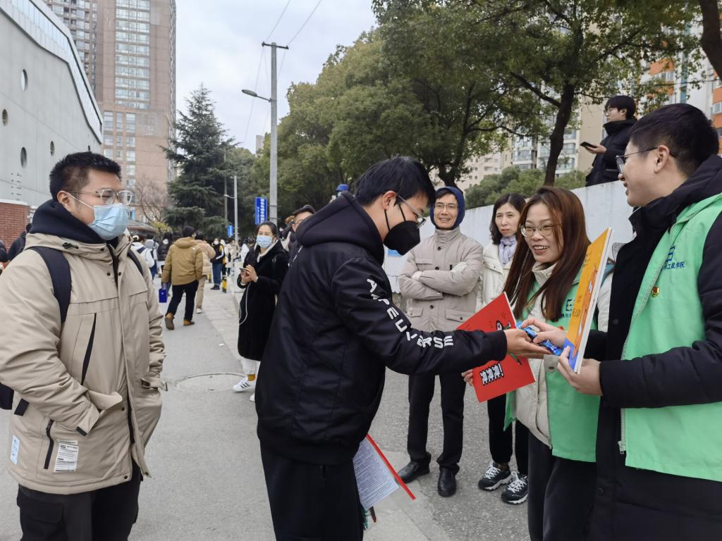 天气寒冷,但温暖相随,党员志愿者们的暖心服务将助力考研学子激发斗志,争取获得理想成绩。