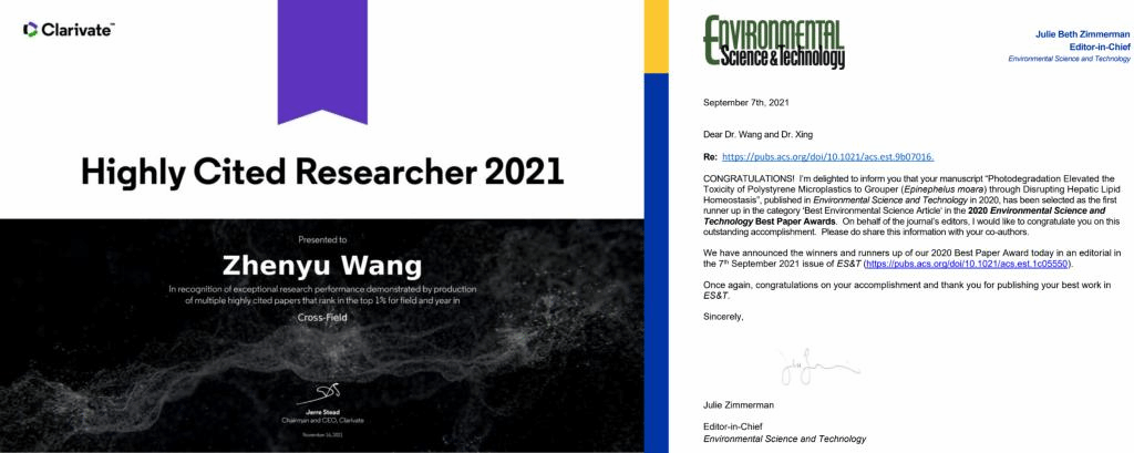学院2021年度发表高水平论文93篇,其中一、二区SCI论文68篇,占论文总数的73%。王震宇教授继2019、2020年入选科睿唯安“高被引科学家”名录之后,再次荣登2021年榜单;其在环境领域国际顶级期刊Environmental Science and Technology发表的封面文章“Photodegradation Elevated the Toxicity of Polystyrene Microplastics to Grouper (Epinephelus moara) through Disrupting Hepatic Lipid Homeostasis”荣获2020年度最佳论文奖(至今国内共4篇)。付善飞副教授在TRENDS IN BIOTECHNOLOGY上发表的综述论文“In situ Biogas Upgrading by CO2-to-CH4 Bioconversion”荣登伟德国际1946bv2021年高水平论文TOP5(Review)榜单。