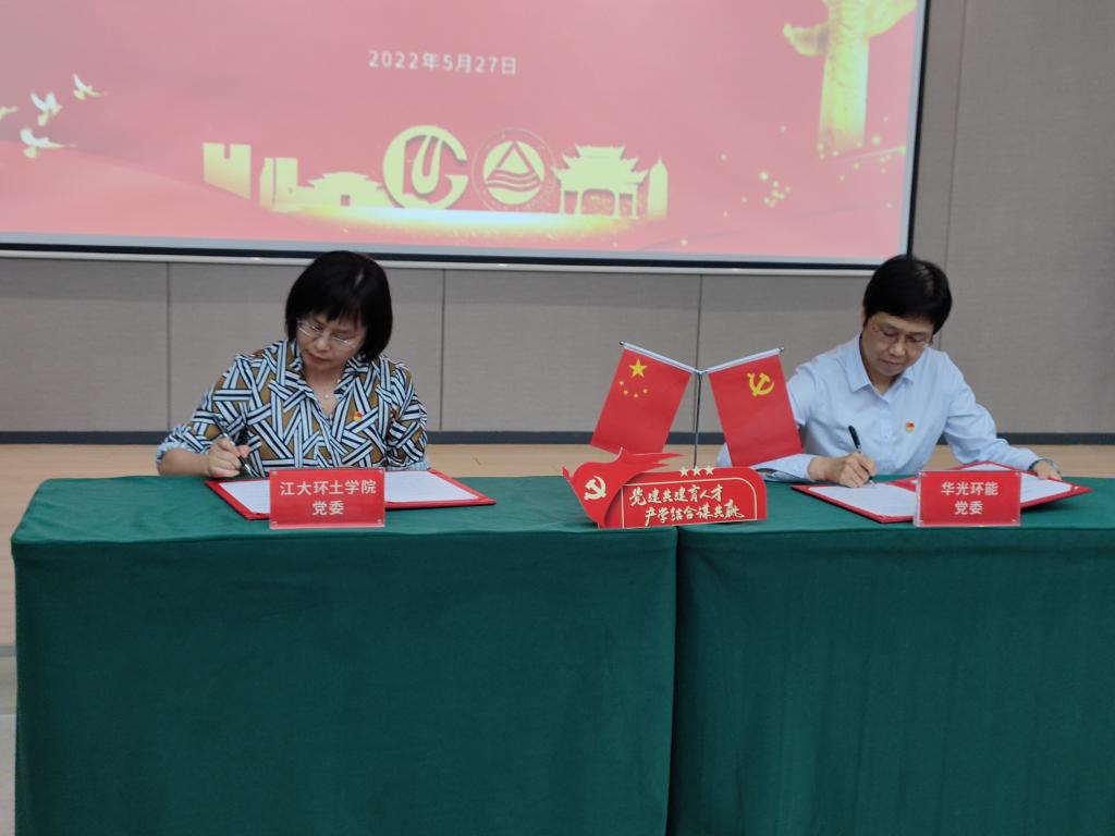 共建启动仪式上,环土学院党委与华光环能党委签订了党建共建协议书,环土学院教工环境一支部与国联环科党支部签订了党建共建协议书。此次共建双方党组织搭台,党员先行,从组织共建、人才共育、资源共享、发展共赢等多方面构建了交流合作体系。相信在校企党建共建的引领下,双方在人才培养、项目研发、成果转化、学生就业等方面的合作将更加全面和深入。