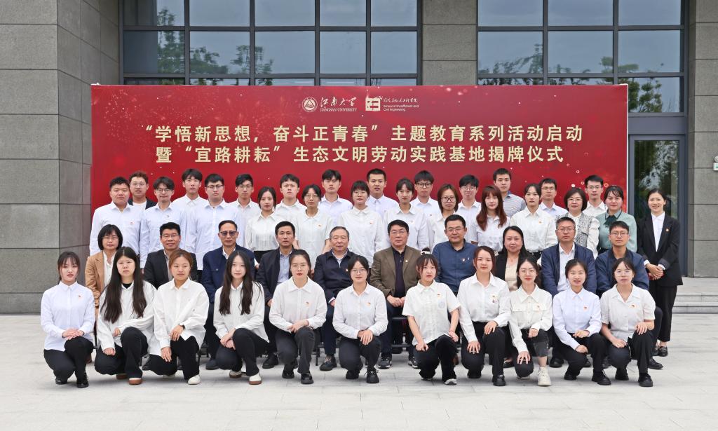为深入开展学习贯彻习近平新时代中国特色社会主义思想主题教育,5月10日下午,环境与土木工程学院东氿校区研究生第一、第二党支部联合开展“学悟新思想,奋斗正青春”主题教育暨“宜路耕耘”生态文明劳动实践基地揭牌。教育部主题教育第七巡回指导组组长甘晖, 副组长任利剑以及全体成员参会指导。校党委副书记戴月波、党委组织部常务副部长方正泉、机关党委书记兼党委组织部副部长张菁、宜兴研究生院管理办公室主任杨延、环境与土木工程学院党委书记李艳、党委副书记胡娟,学院东氿校区研究生第一、第二党支部党员参加活动。