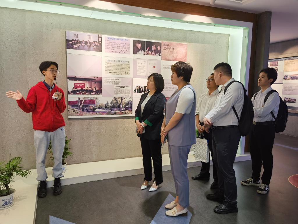 在志愿者的带领下,校企领导共同参观了校史馆。参观体验结束后,双方一行来到环境与土木工程学院D305会议室进一步交流。胡娟对中建四局江苏建设投资有限公司长期以来对学院建设提供的帮助表示感谢;李艳从学院发展历史、学科建设、人才培养、师资队伍、发展愿景等方面介绍了学院情况;马玲玲从公司发展历史、党建情况、建设项目等方面介绍了公司情况;学生代表对公司“精诚杯”奖学金的资助表示感谢,并介绍了作为学生党员在先锋模范作用的发挥;双方围绕“学悟新思想,奋斗正青春”主题进行了交流和分享,并就未来在人才培养、科研合作、学生就业、实习实践等方面开展全方位、多层次的合作达成共识。