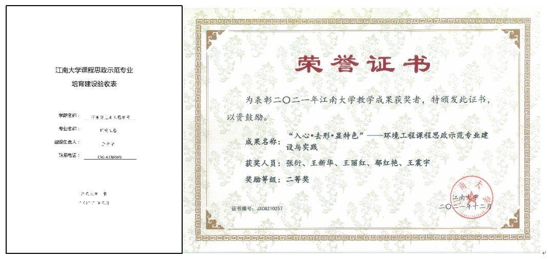 学院打造了院级课程思政示范课程6门,《物理性污染控制工程》、《房屋建筑学》获评校级课程思政示范课程,环境工程专业获评校级课程思政示范专业。“‘入心·去形·显特色’—环境工程课程思政示范专业建设与实践”获伟德国际1946bv教学成果二等奖。“结构创新”教师育人工作室获批校级课程思政先进教学团队,“环境工程系”和“结构力学课程群教研团队”获批校级基层教学组织建设点。大别山扶贫实践团队获评全国“千校千项”最具影响力好项目、“E路黔行”生态脱贫实践团队获评省级优秀团队。