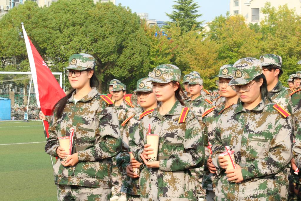 学院党委书记李艳充分肯定了我院学生在军训中展现出的良好军容军貌,鼓励同学们在训练中遵守纪律、认真训练,并希望环土学子不畏艰险,努力拼搏,展现我环土学子的别样风采。为展示10天以来的军训成果,环土学子们演唱了《强军战歌》,整齐划一的立定,踏步,转体是学子们辛勤汗水的见证,展现我院学子的优秀风貌。随后,学院党政领导亲自为“每日军训之星”送上奶茶,领导亲临前线无不体现出学院对学子的关怀和挂念。最后,参会人员进行大合照,剩余同学在教官的指挥下有序领取奶茶,笑容在学子的脸上绽放。