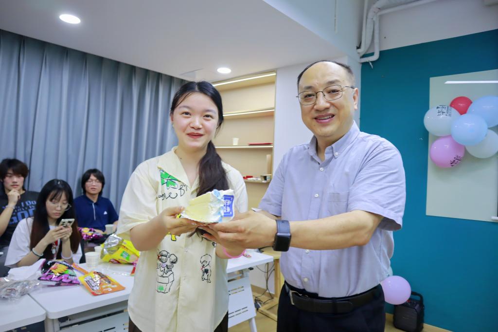 王震宇为毕业生分发蛋糕