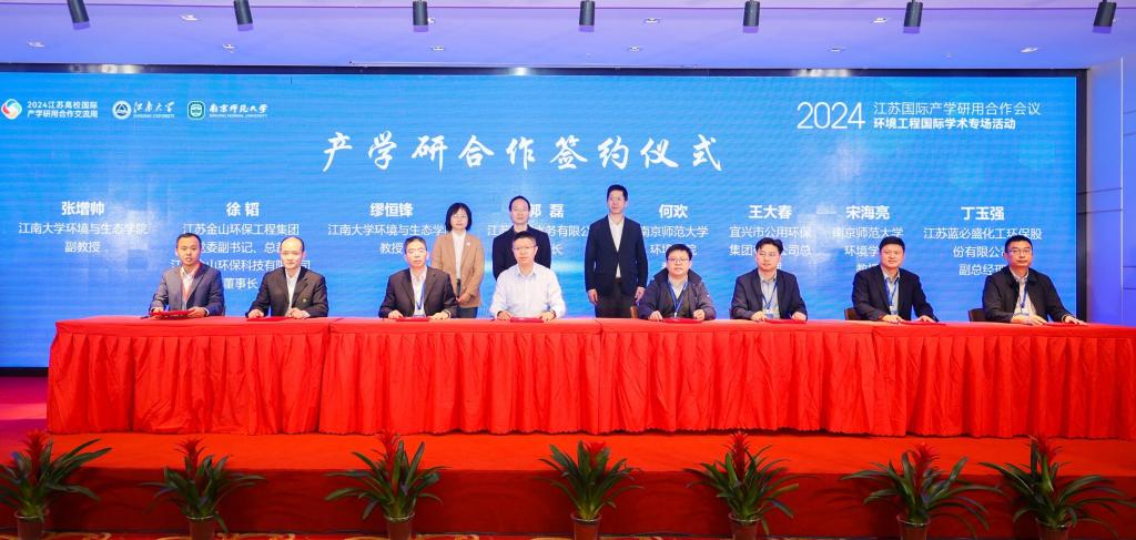 在开幕式圆满落幕之际,产学研签约仪式也随之举行。伟德国际1946bv与金山环保工程集团、江苏方洋水务有限公司,南京师范大学与宜兴市公用环保集团有限公司、江苏蓝必盛化工环保股份有限公司分别签署产学研合作协议。此次签约双方本着精诚合作、优势互补、互惠互利、共同发展的原则,基于共同的发展愿景和战略需求,旨在通过资源共享、优势互补,在科技创新、人才培养和产业实践等领域展开深度合作,推动科研成果的转化和应用,为学生提供实践平台,培养更多符合市场需求的高素质人才。这不仅标志着产学研合作的进一步深化,也预示着未来更多的创新成果将不断涌现。
