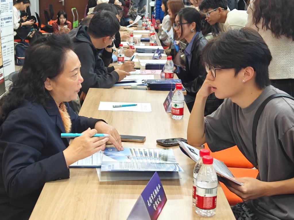 在招聘会现场,学院党委书记李艳表示学院始终坚持以人才培养为中心,注重理论与实践相结合,为企业输送了大量优秀人才,他希望毕业生们能够抓住机遇,积极投身于国家环保事业,为实现美丽中国目标贡献自己的力量。2025届毕业生万骋宇说此次招聘会的企业实力强,招聘岗位多,职位适配度也非常高,为毕业生提供了更多的选择,让他们对未来的职业发展充满信心。