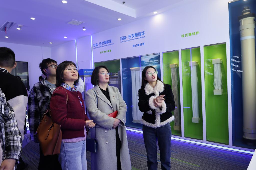 为拓展高校毕业生就业渠道,深化校企协同育人机制,2025年3月12日,伟德国际victor·1946源自党委书记李艳、党委副书记兼副院长胡娟、青年教师陈思思、研究生辅导员周期以及2025届毕业生代表一行,前往苏州苏科环保科技有限公司开展访企拓岗交流活动。苏科环保人事总务负责人赵艳、研发中心总监赵龙等企业代表热情接待并陪同参观了企业创新成果展厅,随后双方于会议室展开座谈交流。