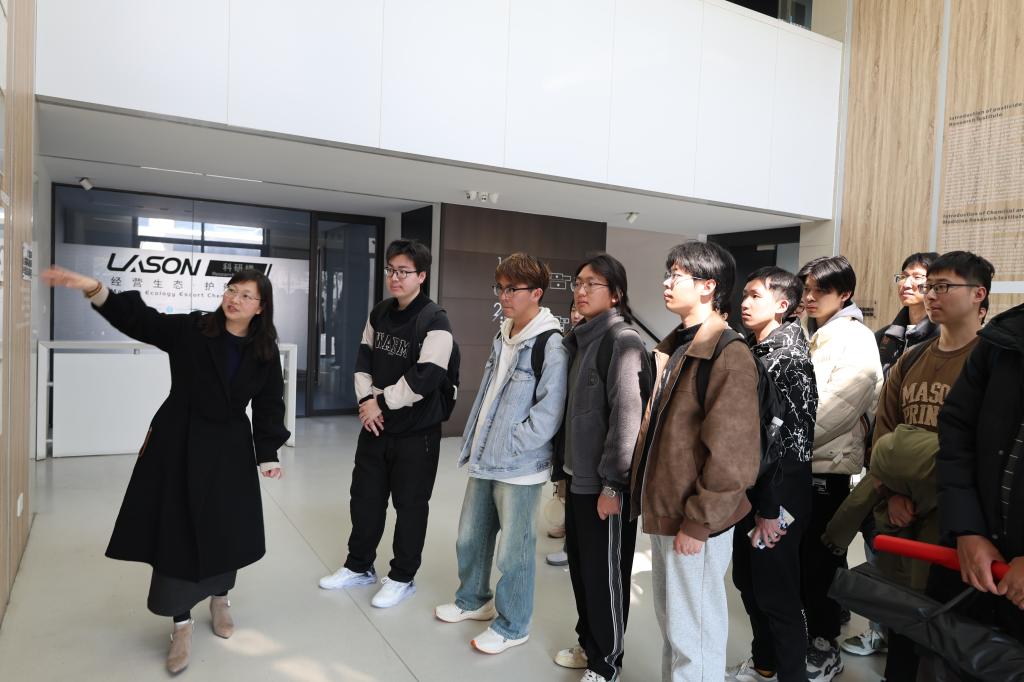 在丁玉强教授带领下,师生实地走访蓝必盛公司科研楼与生产车间。通过现场讲解,学生了解到企业在废水处理、资源循环利用等领域的核心技术,包括“生物膜反应器”“反渗透膜分离”等工艺的实际应用场景。严霞通过企业宣传片,向学生介绍了蓝必盛的发展历程、技术成果及行业地位,让学生感受到环保技术的实际价值。