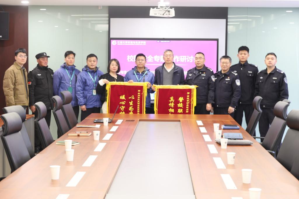会议伊始,现场举行了庄重的锦旗颁发仪式。学院党委杨延首先向宜兴市新庄派出所代表孙福平颁授锦旗,对公安机关为维护学院安全稳定所付出的辛勤努力与展现出的担当精神致以崇高敬意和衷心感谢。随后,胡娟向苏州市东吴保安服务有限公司代表吴伟彬颁授锦旗,对其专业、敬业的服务保障工作表示充分肯定。两面锦旗承载着学院全体师生的深厚谢意,也见证了校地同心协力、共护平安的深厚情谊。