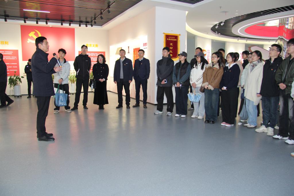 参观期间,戴月波结合自身工作经历,为全体党员讲授了一堂“行走的思政课”。他从理论、历史、现实三个维度,深刻阐释了正确政绩观的核心要义,明确解答了“为谁创造业绩、创造什么业绩、怎样创造业绩”这一命题,并结合企业、学校、社会发展实践,着重强调,社会的稳健发展、经济的持续向好,离不开安全稳定的发展大局,更离不开党建工作的坚强引领与有力支撑。戴月波指出,自改革开放以来,我们党始终坚持与时俱进、守正创新,在时代变革的浪潮中不断自我完善、引领时代发展,为国家发展进步筑牢了根本政治保障,为各类事业高质量发展指明了方向、提供了遵循。戴月波对青年党员提出殷切希望:一是坚守初心使命,把牢思想之舵,始终以正确政绩观为指引,将个人理想融入党和国家事业发展大局,坚定听党话、跟党走的政治信念;二是深耕专业领域,锤炼过硬本领,立足自身岗位潜心钻研、精益求精,不断提升履职尽责、服务发展的综合能力;三是强化实践担当,勇于知行合一,主动扎根一线、担当作为,将理论学习成果转化为服务社会、推动发展的实际行动,在实践中积累经验、增长才干、实现价值。