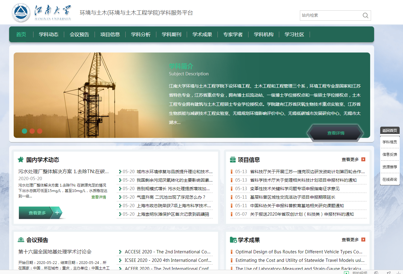经过10个月的研发建设和试运行,“伟德国际1946bv图书馆学科服务平台”正式上线启用。环境与土木(环境与土木工程学院)学科服务平台内容按一级学科划分,对学科专业信息资源、院系资源和图书馆资源等进行聚合重组,包括学术动态、会议预告、项目信息、学科分析、学科期刊、学术成果、论文收录、专家学者、学科机构、学习社区等栏目;老师们可以通过互动模块在平台上提交自己的意见、建议、推荐资源,与学科馆员进行在线咨询。 链接地址:http://environment.jiangnan.xk.hnlat.com/