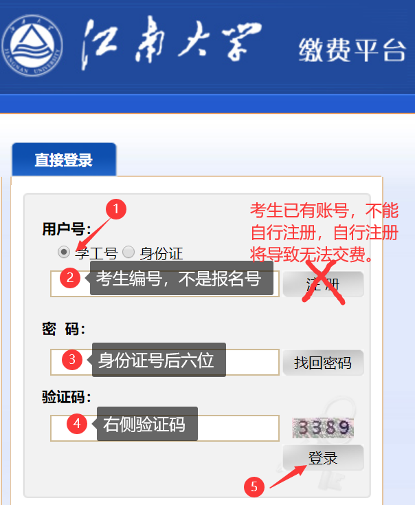 缴费说明:进入复试考生在学院规定的时间内登录“伟德国际1946bv缴费平台”交纳复试费用,复试收费标准:80元/生。缴费网址:http://pay.jiangnan.edu.cn/payment/。登录账号为准考证上的考生编号,登录密码为身份证后六位(友情提醒:考生账号已开通,切勿自行注册)。按照提示交费(使用网银),并打印或截图保存付费凭证。