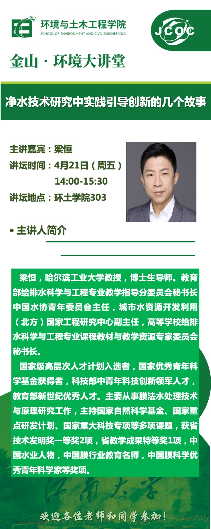 金山·环境大讲堂--梁恒:净水技术研究中实践引导创新的几个故事