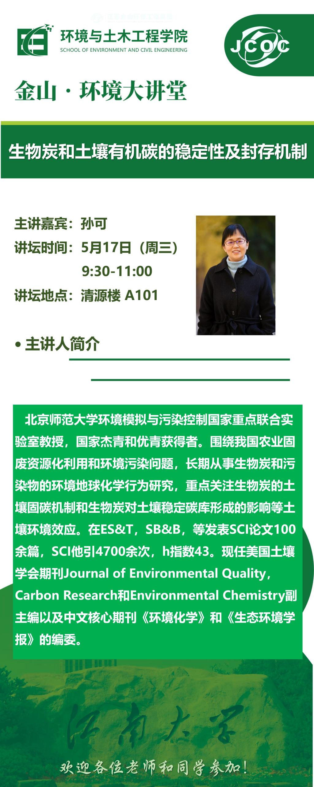 金山·环境大讲堂--孙可:生物炭和土壤有机碳的稳定性及封存机制