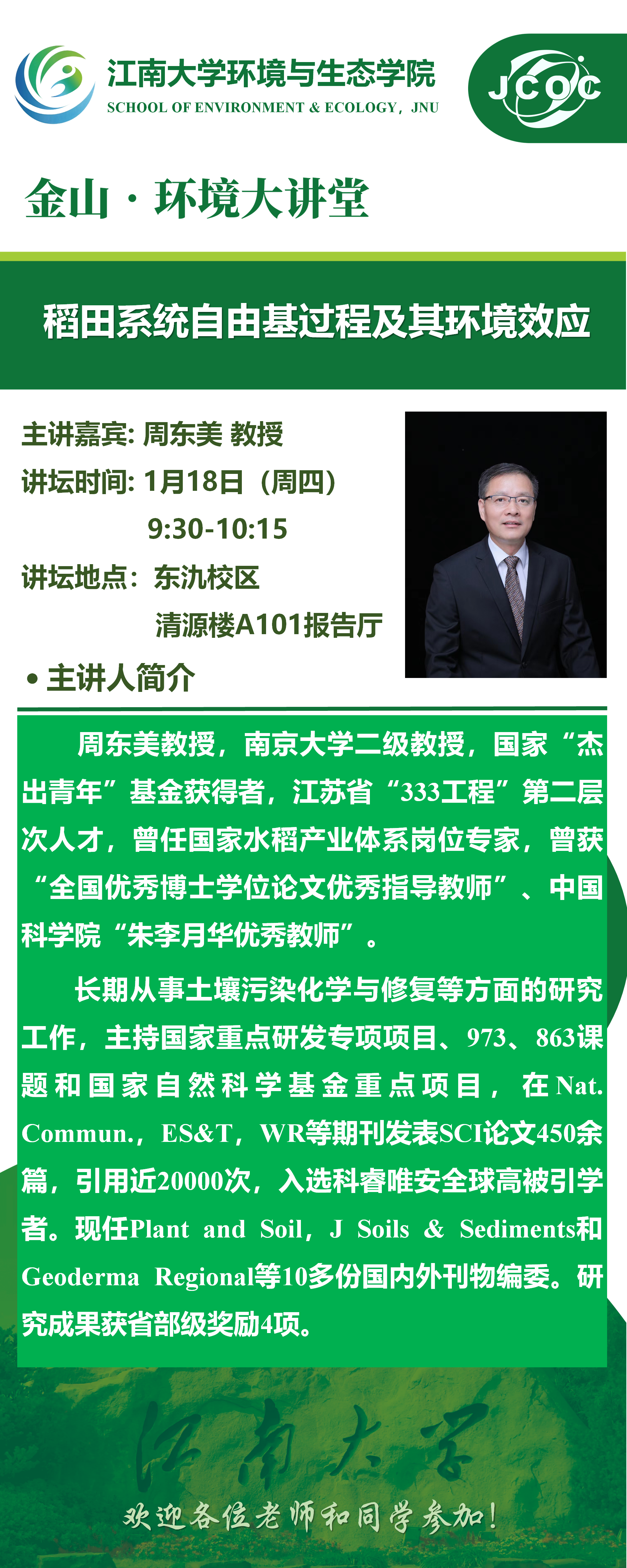 金山·环境大讲堂— 周东美:稻田系统自由基过程及其环境效应