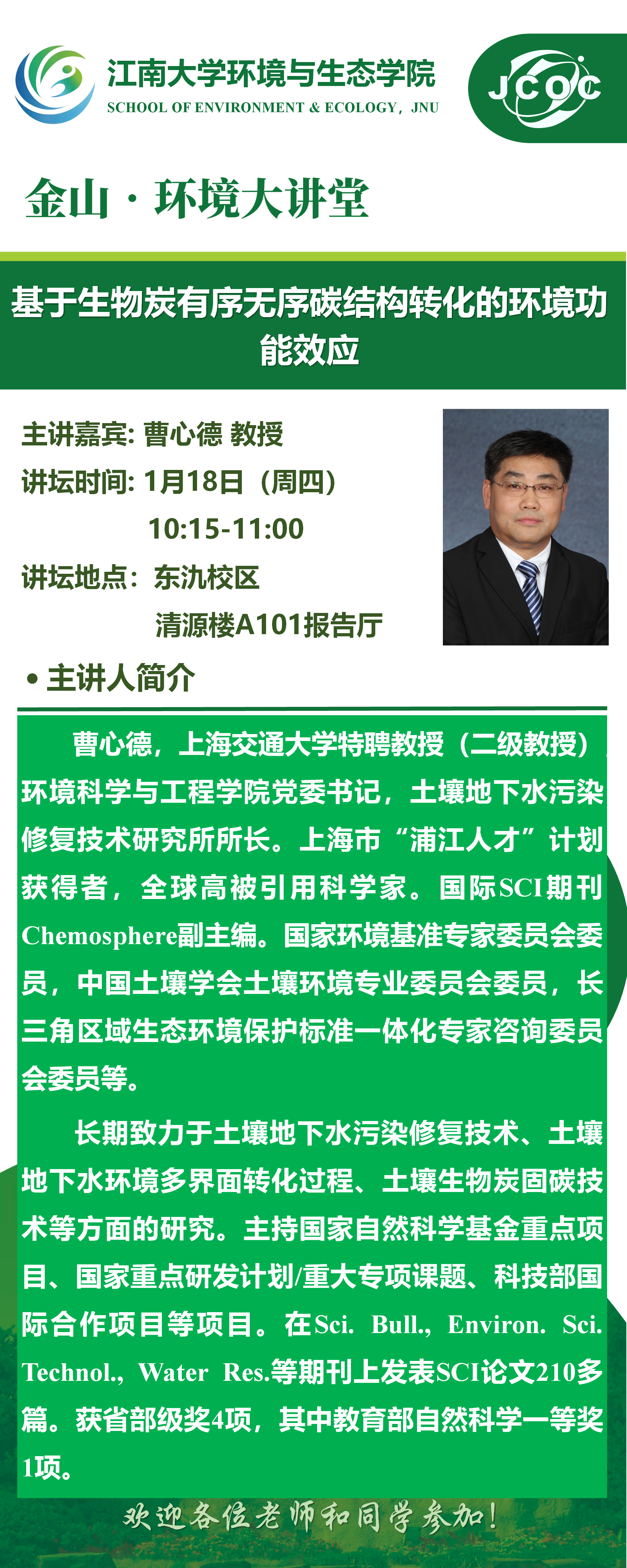金山·环境大讲堂——曹心德:基于生物炭有序无序碳结构转化的环境功能效应