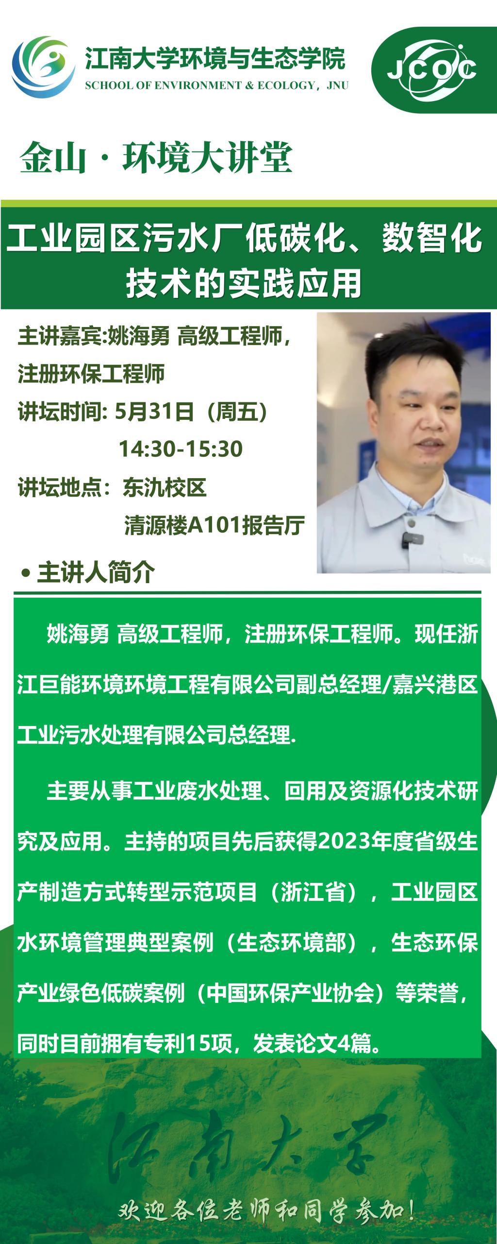 金山•环境大讲堂——姚海勇:工业园区污水厂低碳化、数智化技术的实践应用